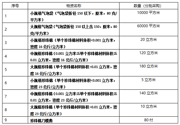 (三)項目內(nèi)容:福建龍溪軸承(集團)股份有限公司計劃采購氣泡袋、珍珠棉。