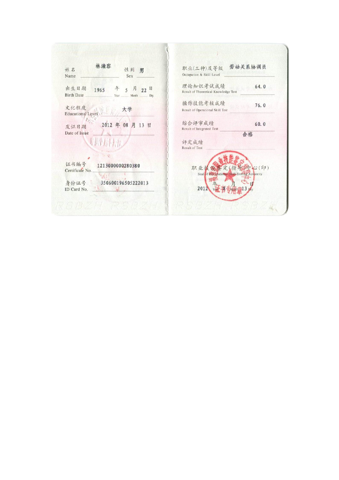 勞動(dòng)關(guān)系協(xié)調(diào)師二級(jí)證書(shū)